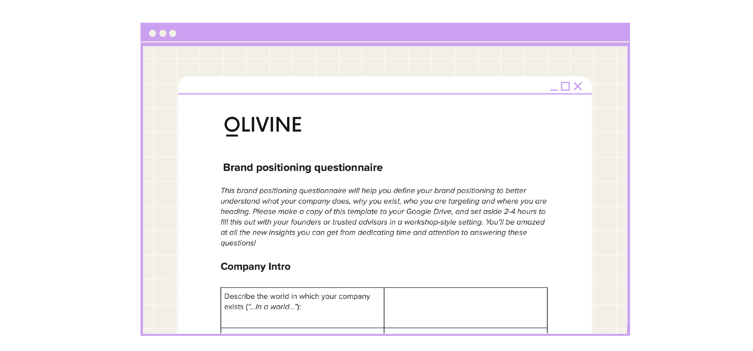 Now it’s time to flesh out your full positioning in a workshop-style setting with your co-founders or advisors. We recommended a minimum of 2 hours to go through this template. Please make a copy of this document to your own Google Drive. Discuss each question and capture your answers in this template.