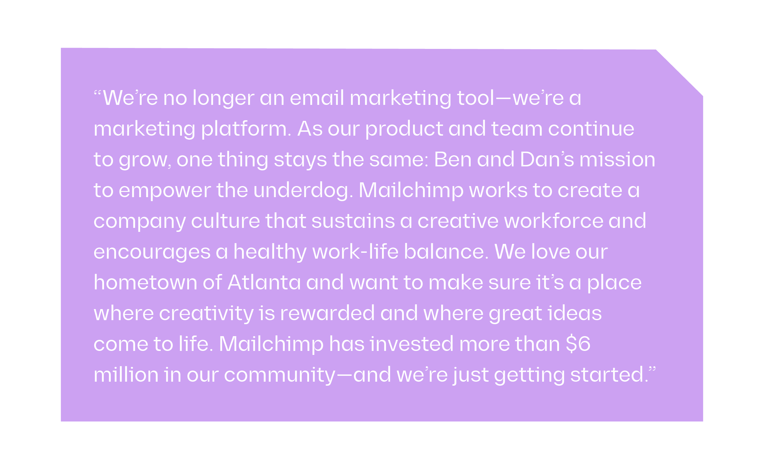 From this vision, we can see that Mailchimp sees itself as far more than just an email tool. It’s a communication platform that cares about the impact it has on its employees and community.