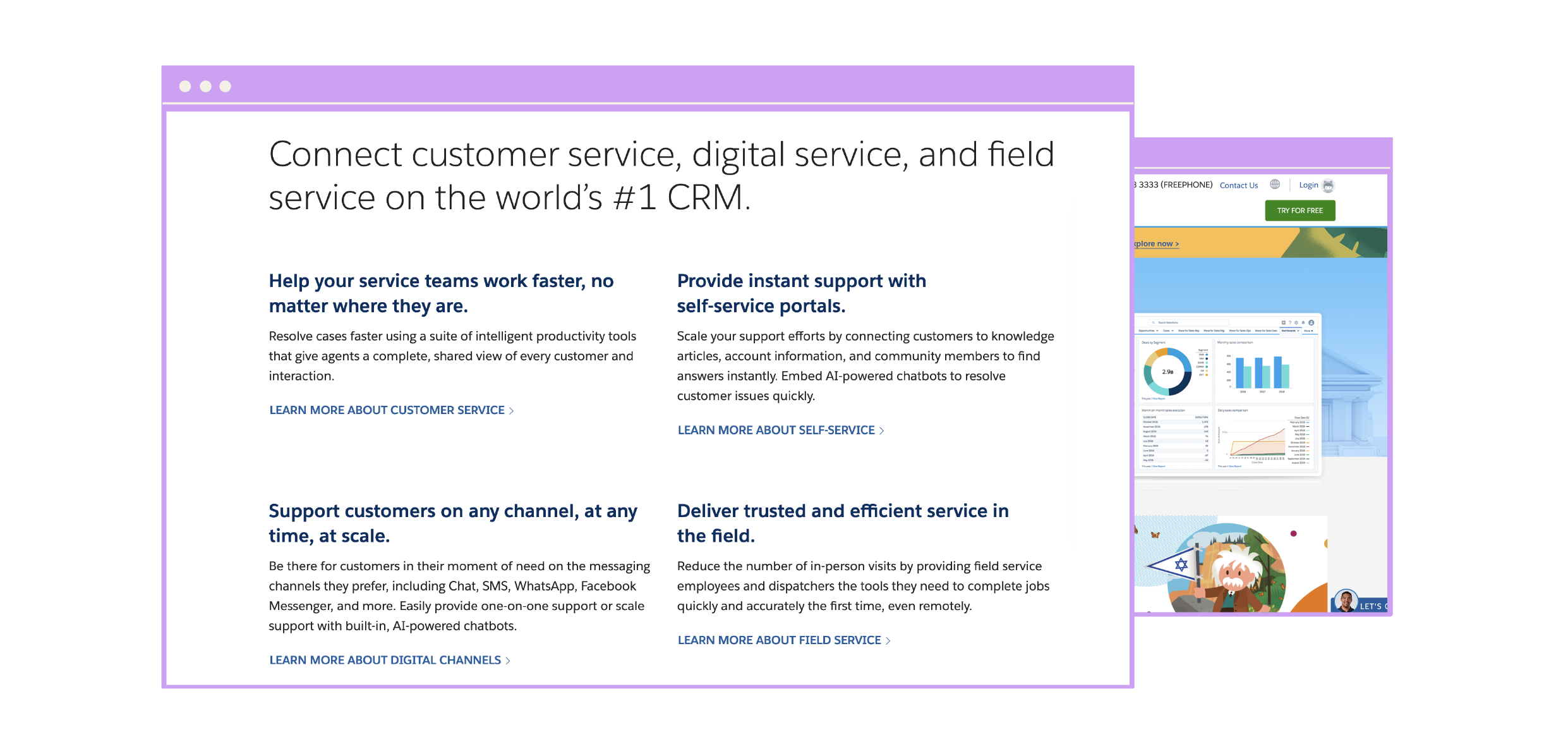 With clear and pointed positioning, messaging your brand becomes a lot easier. Let's look at Salesforce's product overview section on its homepage (as of April, 2020). See how the messaging is in-line with their positioning?